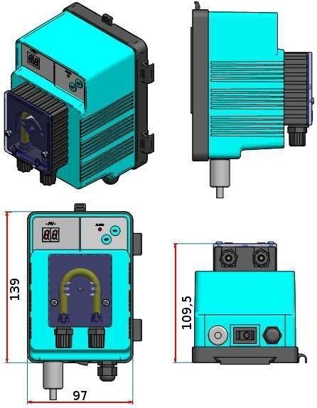 Диапазон измерений: pH 6.0 - 8.0 Производительность: 1,8 л/ч Подача за один цикл : 0.56 мл Циклов в минуту: 30 Мощность: 8 Вт Класс защиты: IP 55 Производство: Microdos s.r.l. Италия
