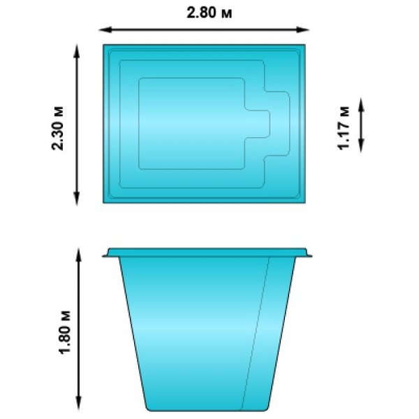 Готовая компактная купель. Такая купель одновременно является надежной тепло- и гидроизоляционной оболочкой, а также несущей конструкцией, которая не требует бетонных подпорок. Установка такой купели для бани занимает 1 день. Чтобы подключить ее к водоснабжению, установить обогревающее и фильтрационное оборудование, понадобится еще один день.