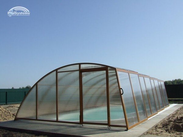 Павильоны Элианора - это идеальное сочетание элегантной формы и удобства эксплуатации. Данный тип накрытия для бассейна позволяет устроить проход или зону отдыха вдоль одной из боковых сторон бассейна. Первую секцию можно использовать для защиты от солнца в жаркий летний день. Наиболее целесообразно использовать раздвижные накрытия типа Элианора при их внутренней ширине от 5 до 9 метров, высота павильона, при этом, позволит входить в него в полный рост. Павильон для бассейна Элианора , благодаря своей форме, эстетично вписывается в любой ландшафт и станет изюминкой и неотъемлемой частью Вашего участка.