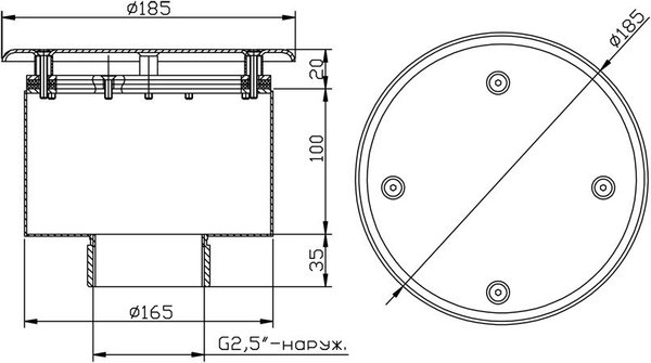 Водозабор с антивихревой крышкой ВЗ.625.1, д.165*100 2,5" (наруж.), плитка купить в Москве недорого в интернет-магазине Opool